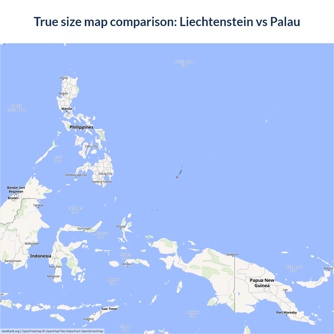 Liechtenstein vs Palau size on the map