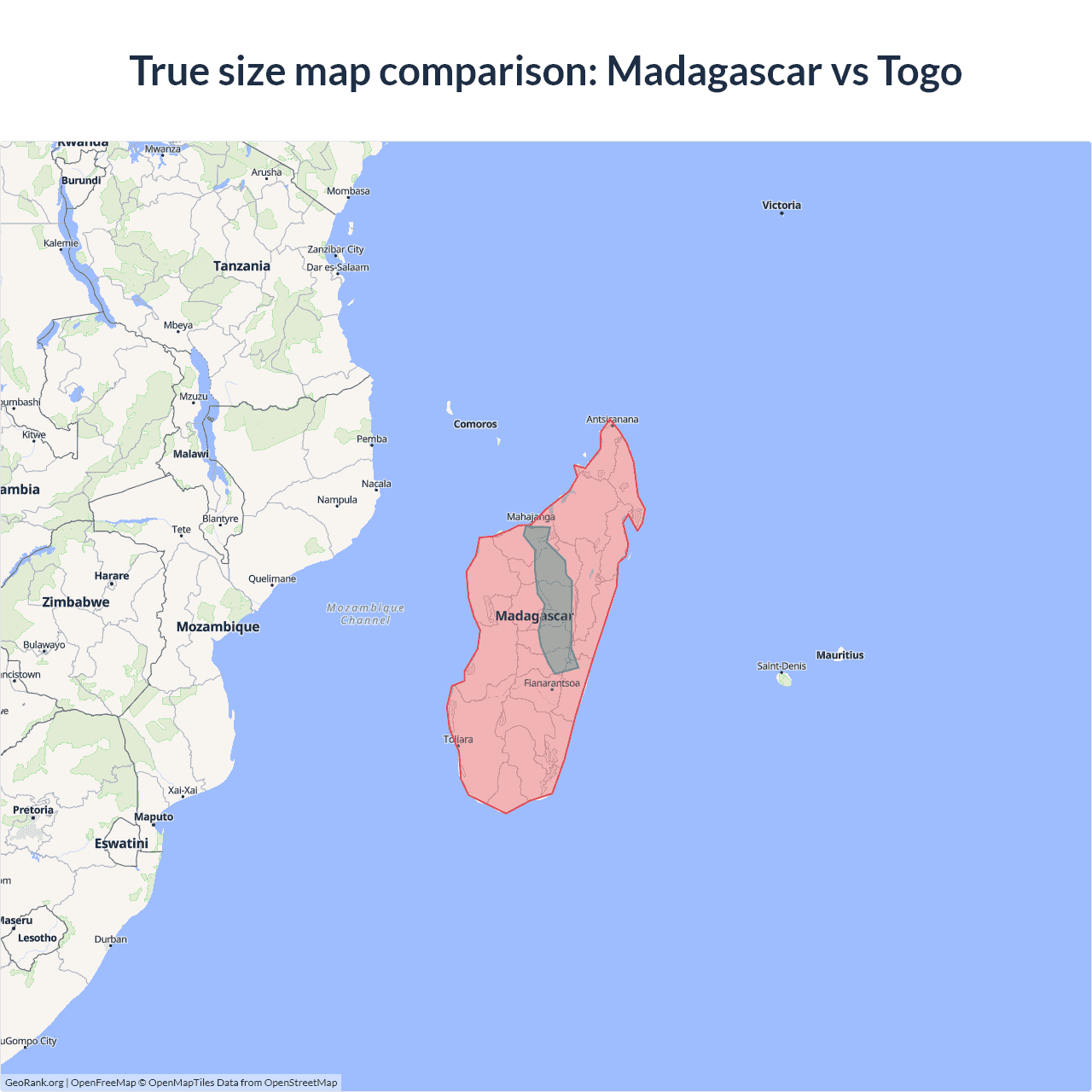 - Madagascar ranks 46/197 by total surface area vs 123/197 for Togo.