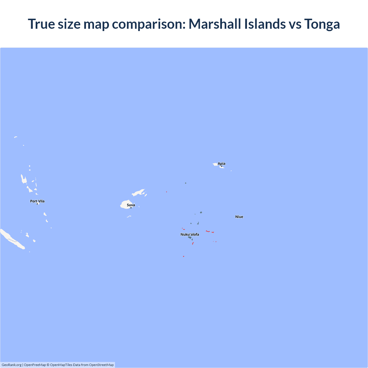 Marshall Islands vs Tonga size on the map