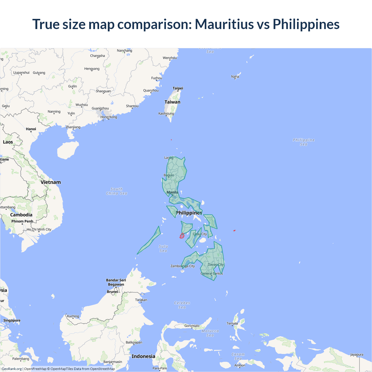 Mauritius vs Philippines size on the map