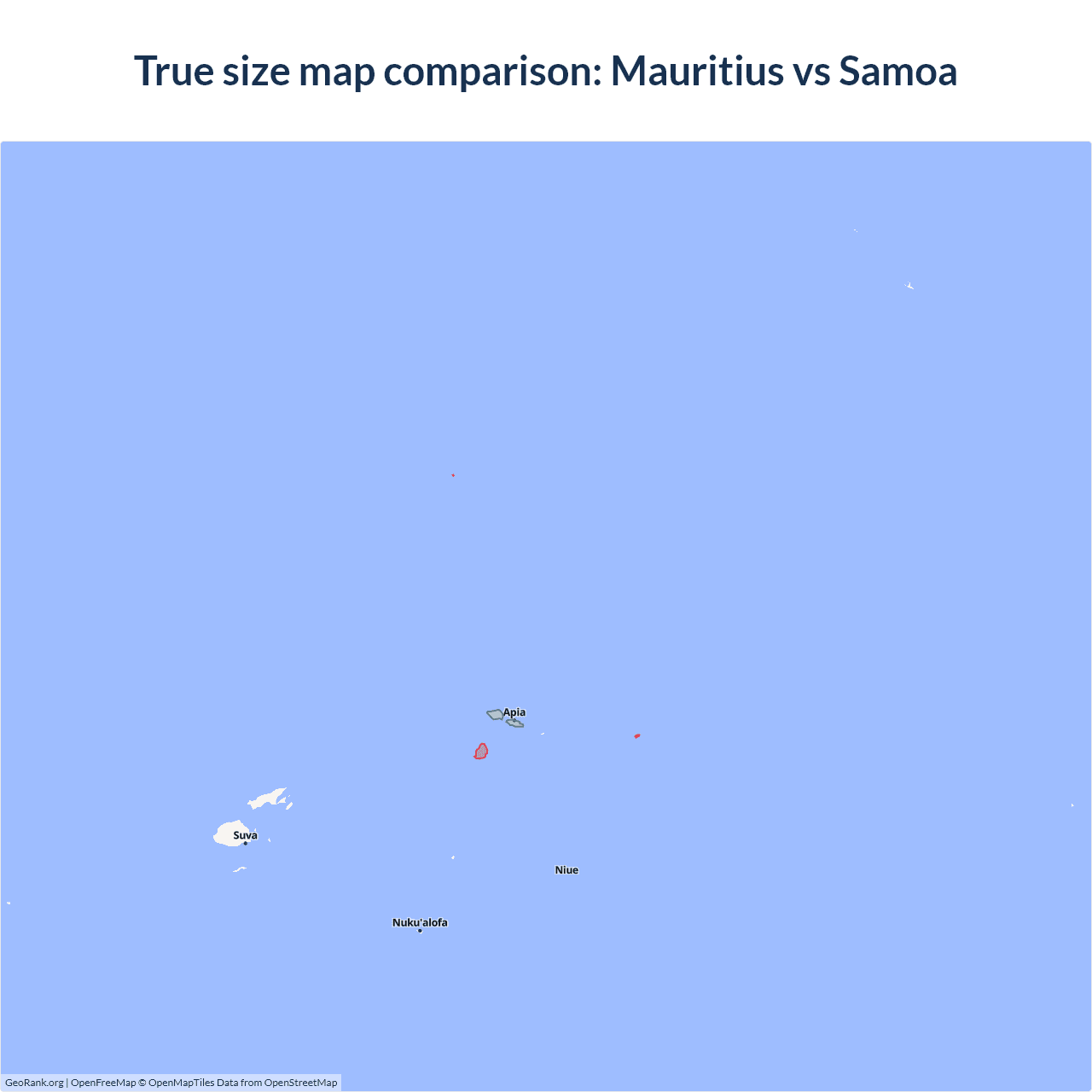 - Mauritius ranks 170/197 by total surface area vs 168/197 for Samoa.