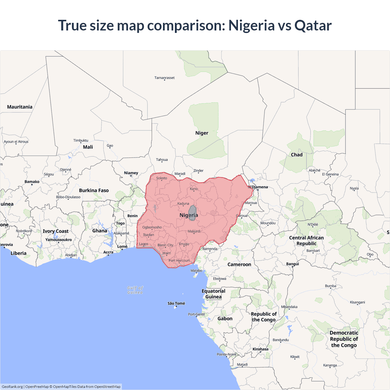 Nigeria vs Qatar size on the map