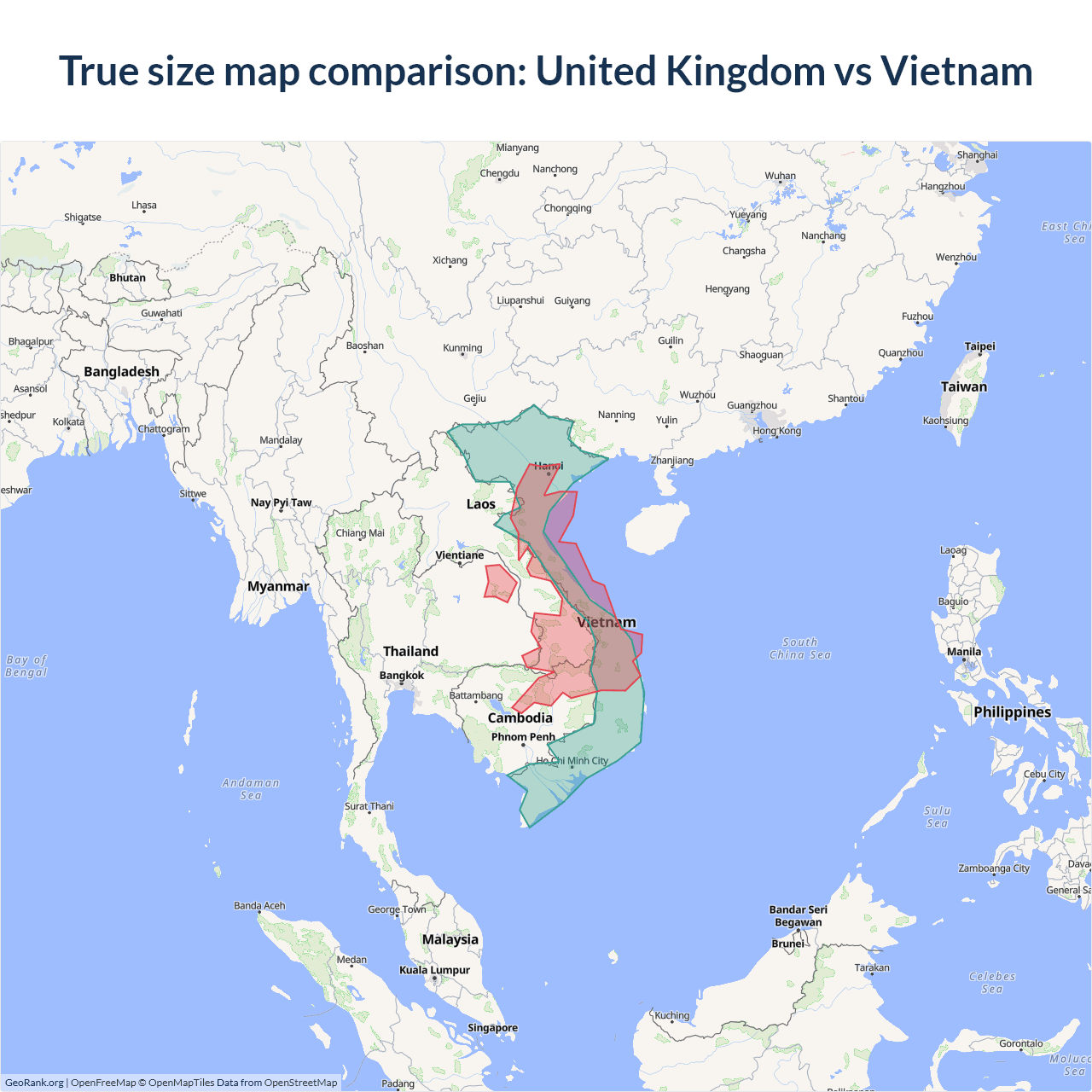 United Kingdom vs Vietnam size on the map